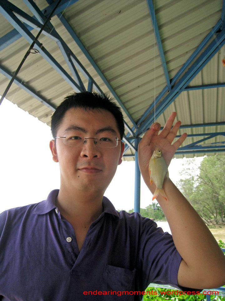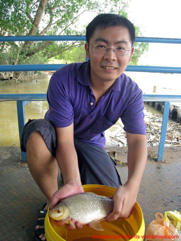 Again small fishes were nibbling at my oil palm bait. Out of a sudden, my rod bent and line was screaming out of my spool. I bent my rod and started cranking in line. After 2 minutes of struggle, I finally landed my very first Ikan Ara aka Ikan Kelabau.